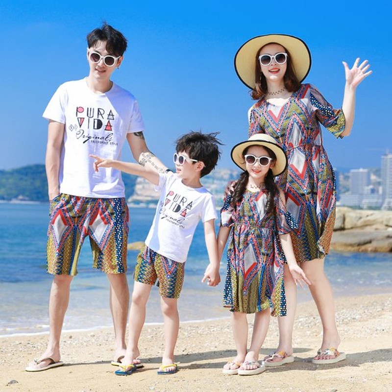 家族服 ペアルックセット ペアルック カップル おしゃれ 半袖 tシャツ パンツ ワンピース お揃い ご夫婦 ペア 親子服 夏 カジュアル ビーチ 海 旅行 遊び 通販 Lineポイント最大get Lineショッピング